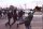 Un cordon de flics empêche toute personne de rejoindre...