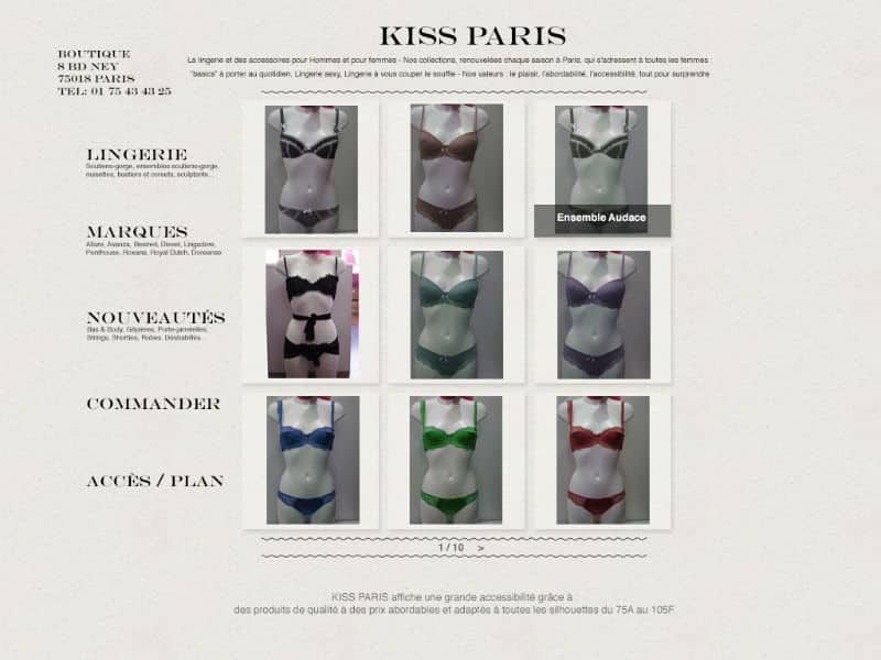 Pour une la vitrine d’une boutique de lingerie, voilà un petit site web, avec un CMS SPIP tout simple pour présenter le catalogue.